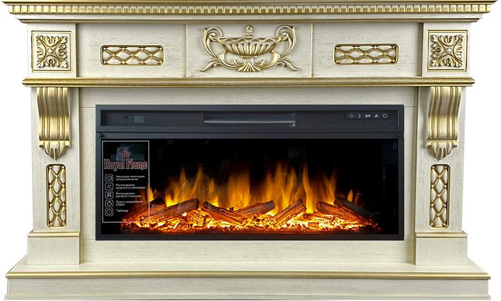 Каминокомплект Corsica - Слоновая кость с патиной (Ширина 1500 мм) с очагом Vision 42 LOG LED Royal Flame