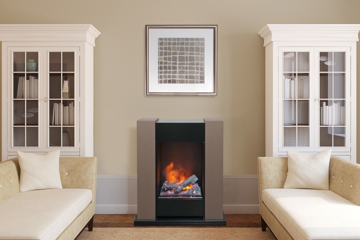 Компактный каминокомплект Vivaldi представляет собой стильное двухцветное обрамление и встроенный очаг Cassette 400 с эффектом реального пламени Opti-Myst.