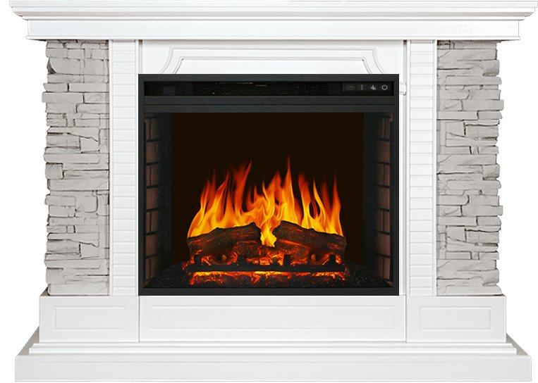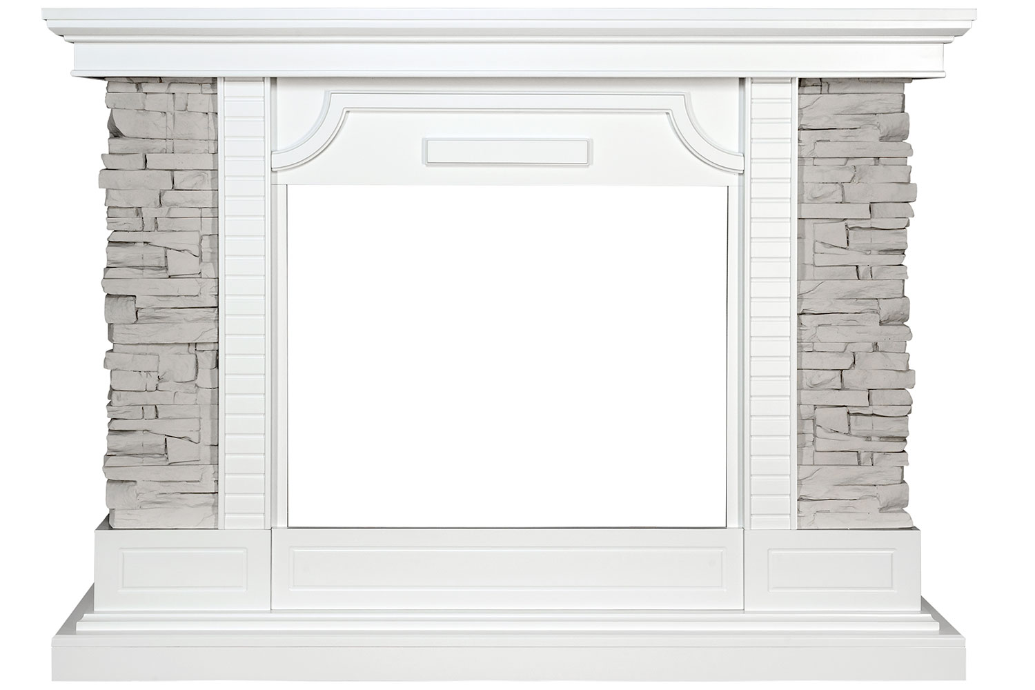 Каминный портал Avignon выполнен из дерева и серого сланца, который имитирует камень. Декорирован боковыми колоннами и строгими узорами на деревянных деталях. Роскошное сочетание белого и серых цветов придают ему утонченности и изысканности.