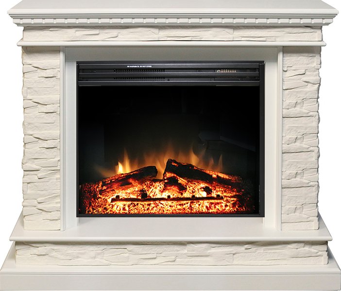 Каминокомплект Calgary - Белый / Сланец белый с очагом Jupiter FX New Royal Flame