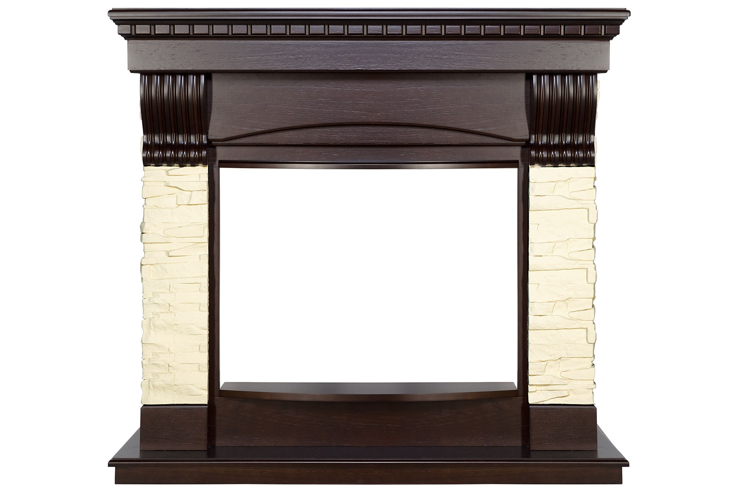 Портал Denver – элегантная модель, выполненная из дерева и светлого искусственного камня. Классический портал с элементами декора в античном стиле. Цвет дерева – темный дуб. Строгий, лаконичный дизайн модели идеально впишется в большинство интерьерных стилей. Подходит для установки как в городских в квартирах, так и в загородных домах.