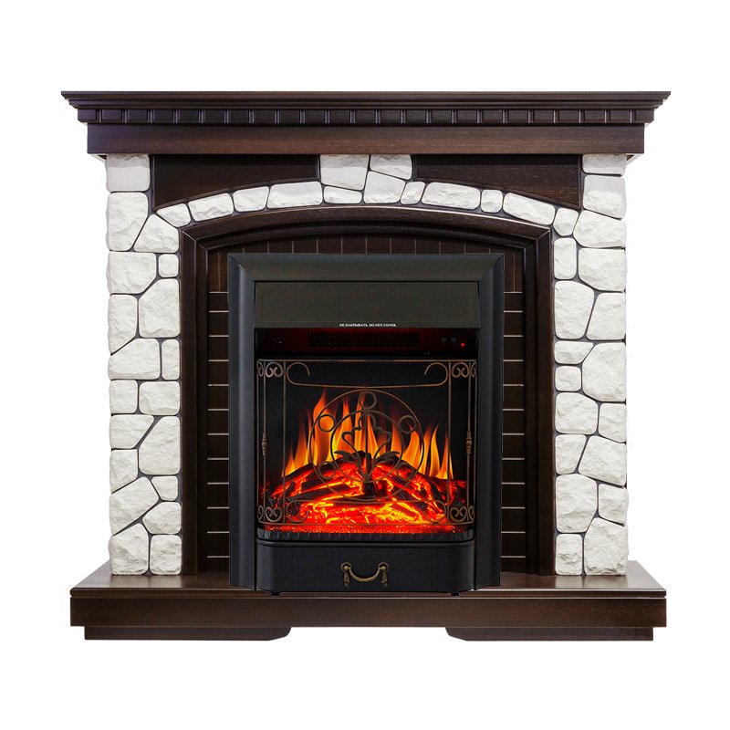 Каминокомплект Glasgow - Темный дуб / Белый с очагом Majestic FX Black Royal Flame
