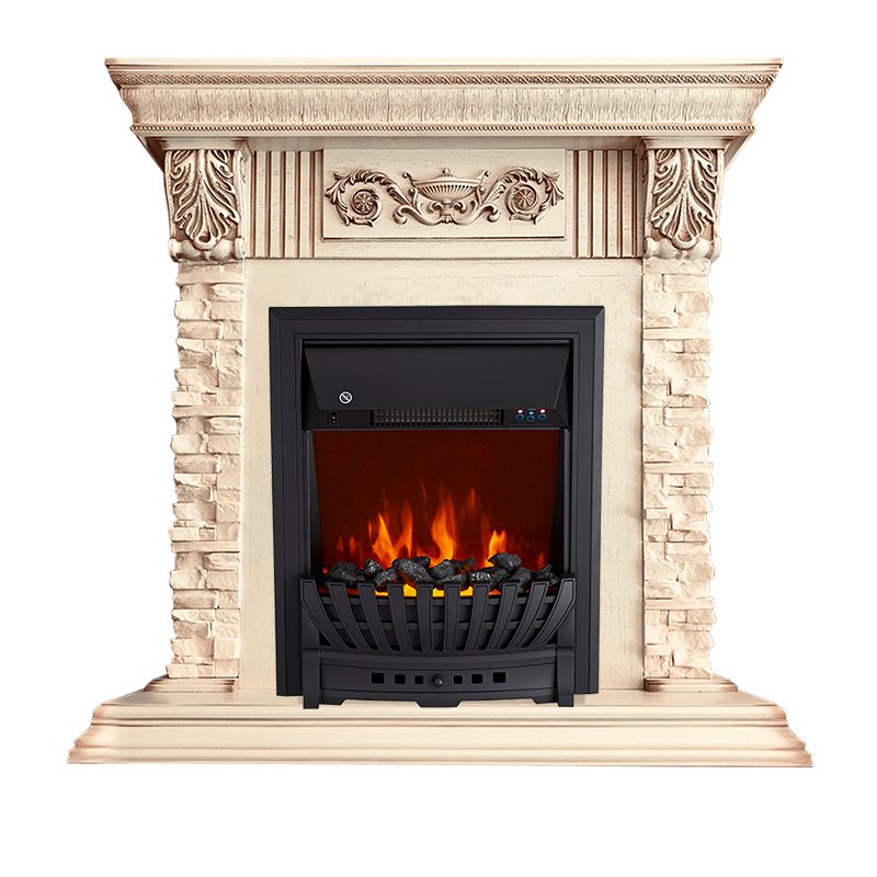 Каминокомплект Luxemburg (каменный) - Сланец/Cлоновая кость с патиной с очагом Aspen Black Royal Flame