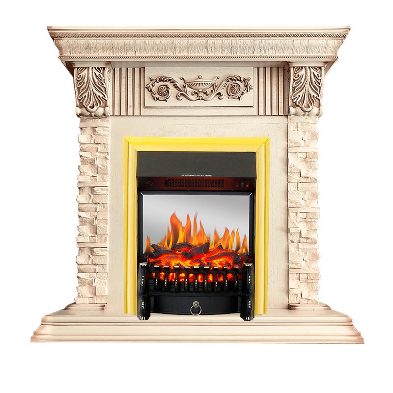 Каминокомплект Luxemburg (каменный) - Сланец/Cлоновая кость с патиной с очагом Fobos FX M Brass Royal Flame