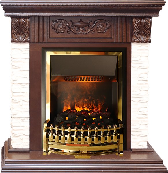 Электрический очаг Dimplex Atherton серии Opti-Myst с эффектом реального пламени. Этот стильный классический очаг в обрамлении золотого цвета предназначен для встраивания в порталы, выполненные в классическом стиле.