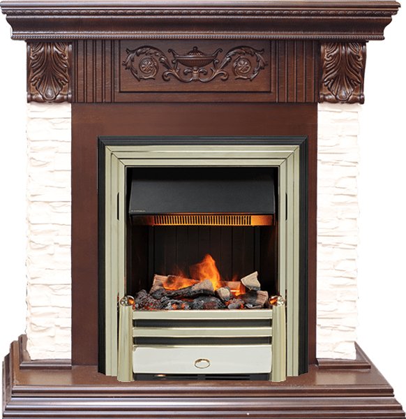 Электрокамин выполнен в золотом цвете. Золото – это материал, который никогда не выйдет из моды, это свидетельство безупречного вкуса и верности традициям. Цвет золота подчёркивает неповторимый стиль и необычность этого камина. К очагу можно подобрать любой портал, который подойдет к вашему интерьеру и станет его лаконичным продолжением. В очаге Dimplex Cavendish применяется эффект «живого» пламени Opti-Myst, в основу которого заложен инновационный принцип имитации огня - в очаге мерцает пламя, практически неотличимое от настоящего. В камине используется муляж дров ручной работы, которые невозможно отличить от настоящих поленьев, а благодаря подсветке создается полная имитация жарко пылающего очага.