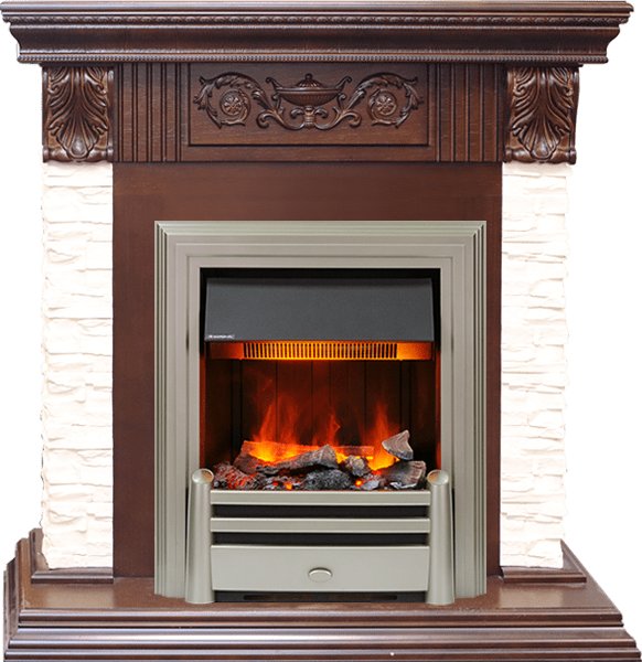 Электрокамин выполнен в золотом цвете. Золото – это материал, который никогда не выйдет из моды, это свидетельство безупречного вкуса и верности традициям. Цвет золота подчёркивает неповторимый стиль и необычность этого камина. К очагу можно подобрать любой портал, который подойдет к вашему интерьеру и станет его лаконичным продолжением. В очаге Dimplex Cavendish применяется эффект «живого» пламени Opti-Myst, в основу которого заложен инновационный принцип имитации огня - в очаге мерцает пламя, практически неотличимое от настоящего. В камине используется муляж дров ручной работы, которые невозможно отличить от настоящих поленьев, а благодаря подсветке создается полная имитация жарко пылающего очага.
