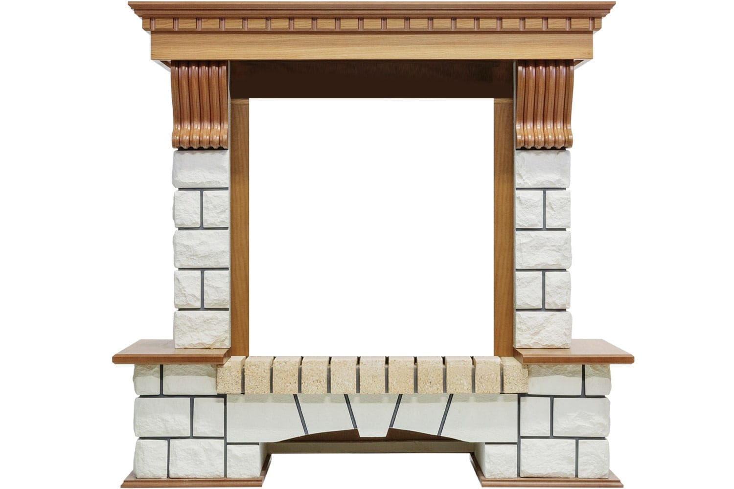 Каминокомплект Pierre Luxe - Дуб / Белый (Высота 1020мм) с очагом Danville Brass FB2