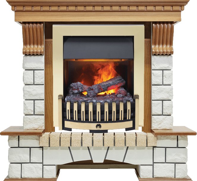 Каминокомплект Pierre Luxe - Дуб / Белый (Высота 1020мм) с очагом Danville Brass FB2 Dimplex