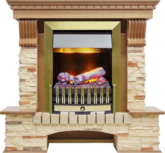 Каминокомплект Pierre Luxe - Дуб / Сланец с очагом Danville Antique Brass FB2
