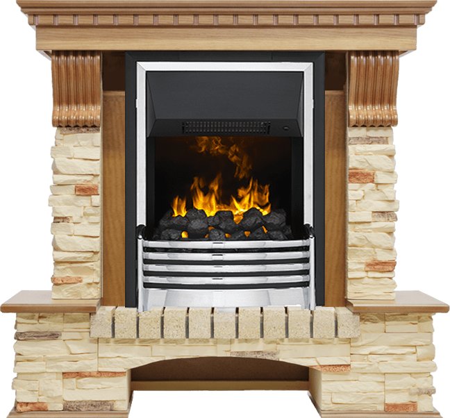 Каминокомплект Pierre Luxe - Дуб / Сланец с очагом Flagstaff