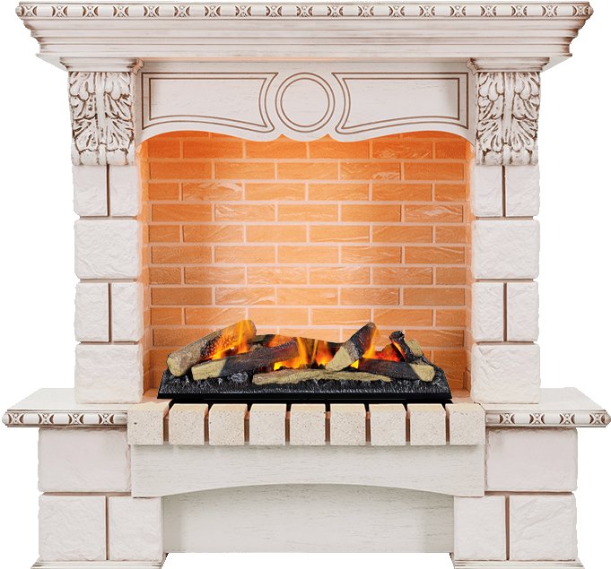 Каминокомплект Pierre Luxe - Слоновая кость / Шампань (Высота 1035мм) с очагом Cassette 600 LNH-INT (с дровами)