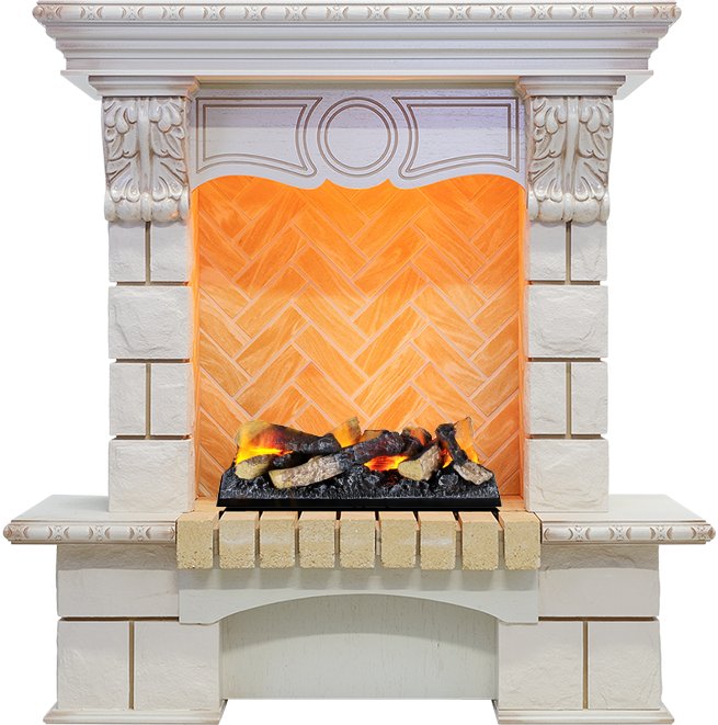 Каминокомплект Pierre Luxe - Слоновая кость / Шампань (Высота 975мм) с очагом Cassette 400 LNH-INT (с дровами)