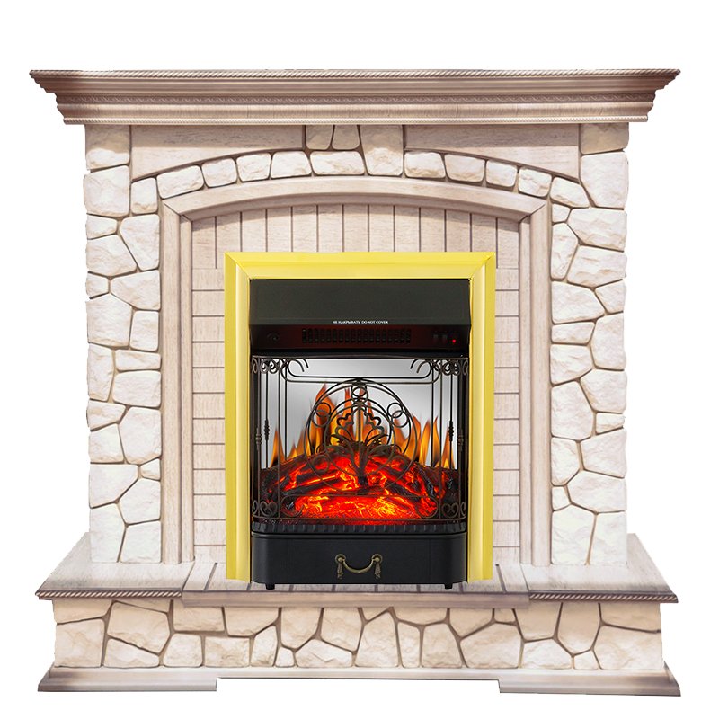 Каминокомплект Preston - Белый/Слоновая кость с патиной с очагом Majestic FX M Brass Royal Flame