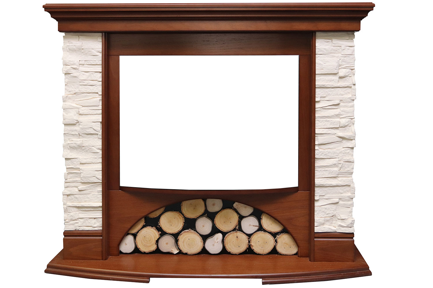 В нижней части портала, в нише с арочным сводом, расположена поленница. Эта деталь является безусловной изюминкой модели, делая ее еще более интересной и оригинальной. Выдающийся вперед постамент имеет закругленную форму.