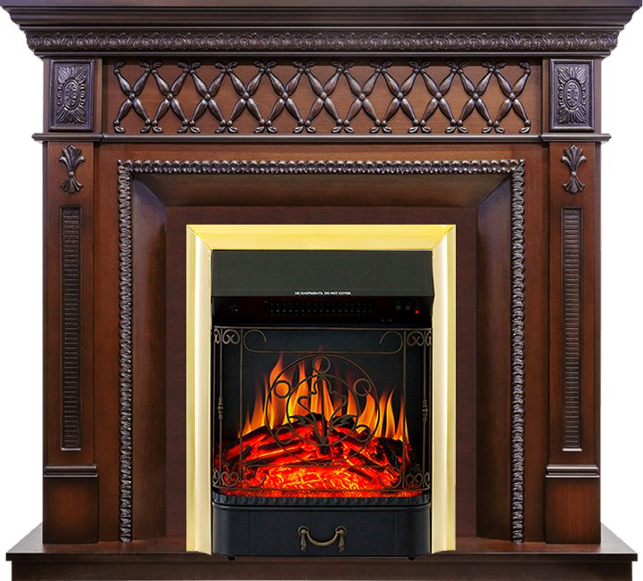 Каминокомплект Alexandria - махагон коричневый антик с очагом Majestic FX Brass Royal Flame