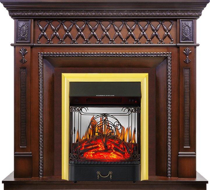 Каминокомплект Alexandria - махагон коричневый антик с очагом Majestic FX M Brass Royal Flame