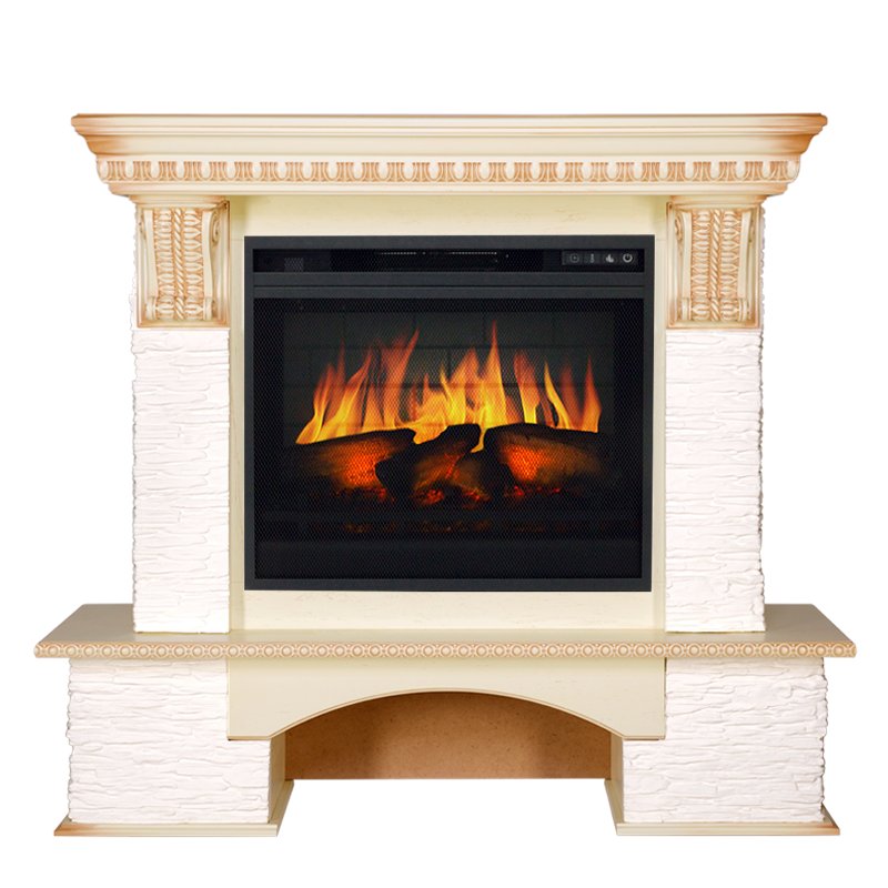 Каминокомплект Pierre Luxe - Сланец белый / Слоновая кость с патиной с очагом Vision 23 EF LED 3D FX Royal Flame