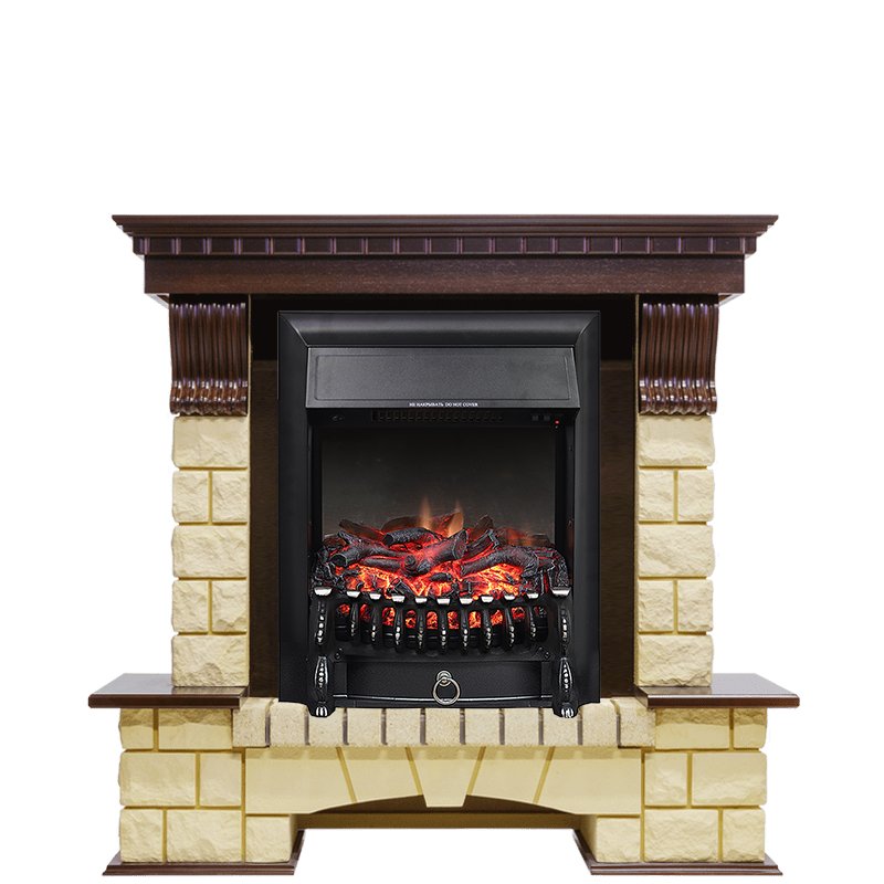 Каминокомплект Pierre Luxe - Темный дуб / Шампань с очагом Fobos FX Black Royal Flame