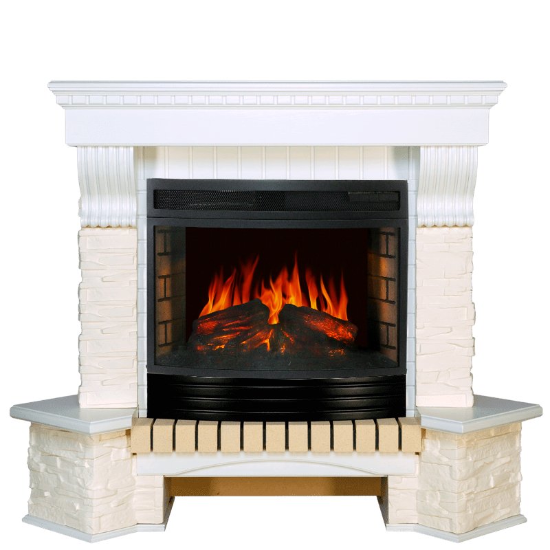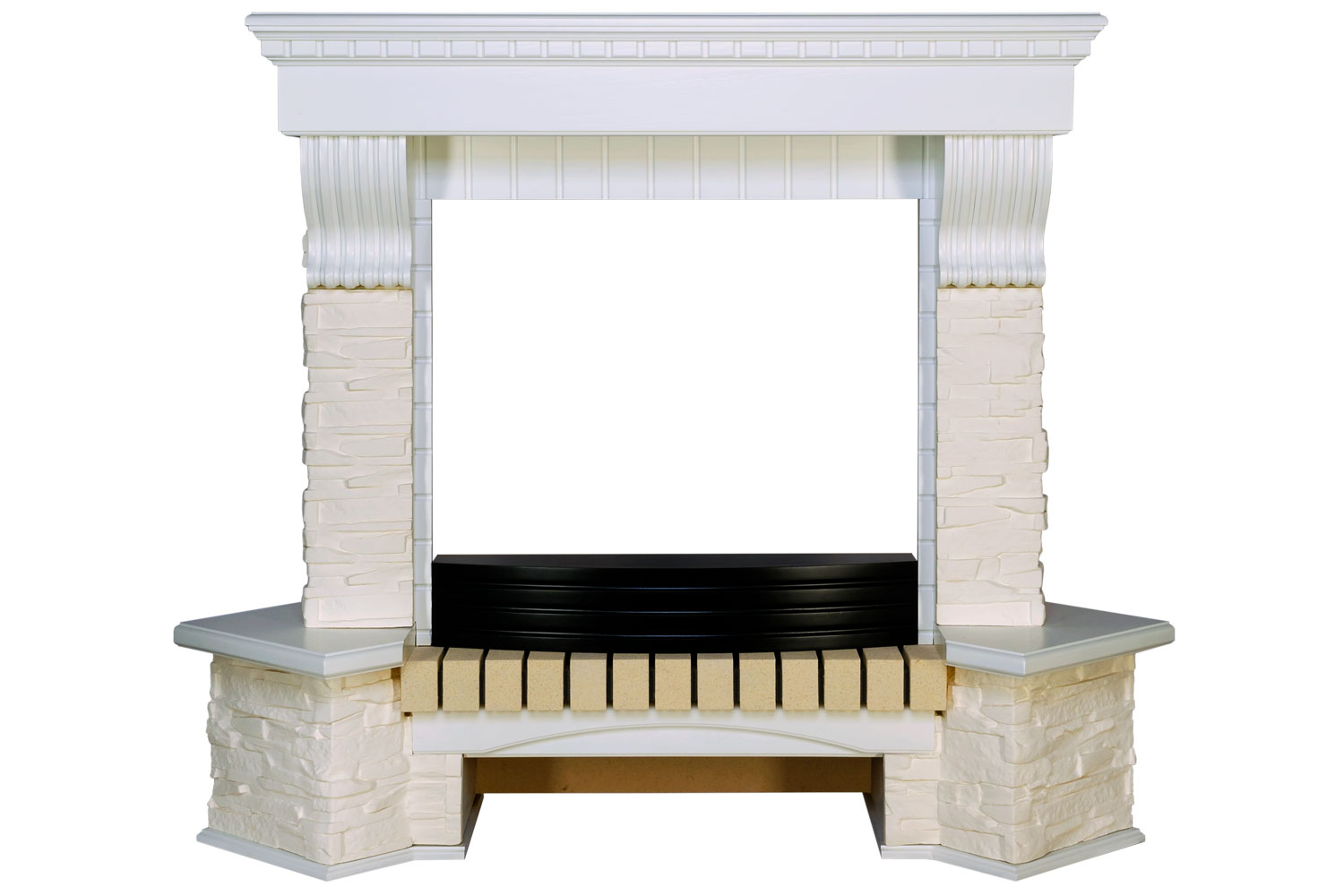 Каминокомплект Pierre Luxe угловой - Белый / Сланец белый с очагом Dioramic 25 LED FX