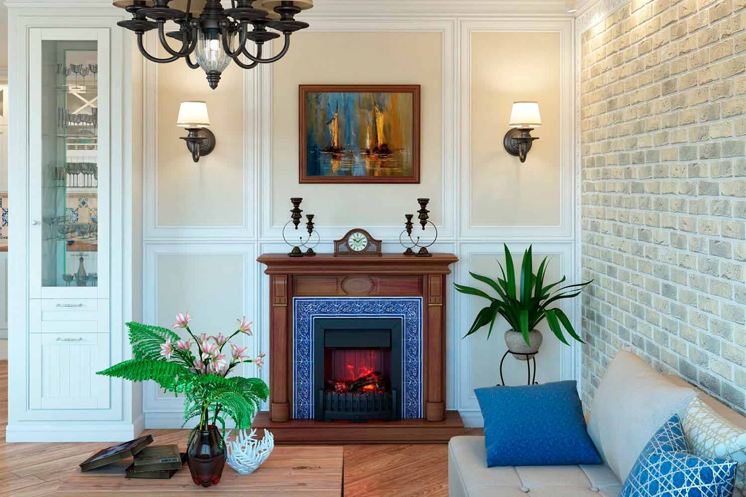 Благодаря электрическому камину в вашей квартире не только появляется «живое» пламя, но происходит и увлажнение воздуха в помещении. Очаг можно встроить в любой подходящий по размеру портал.