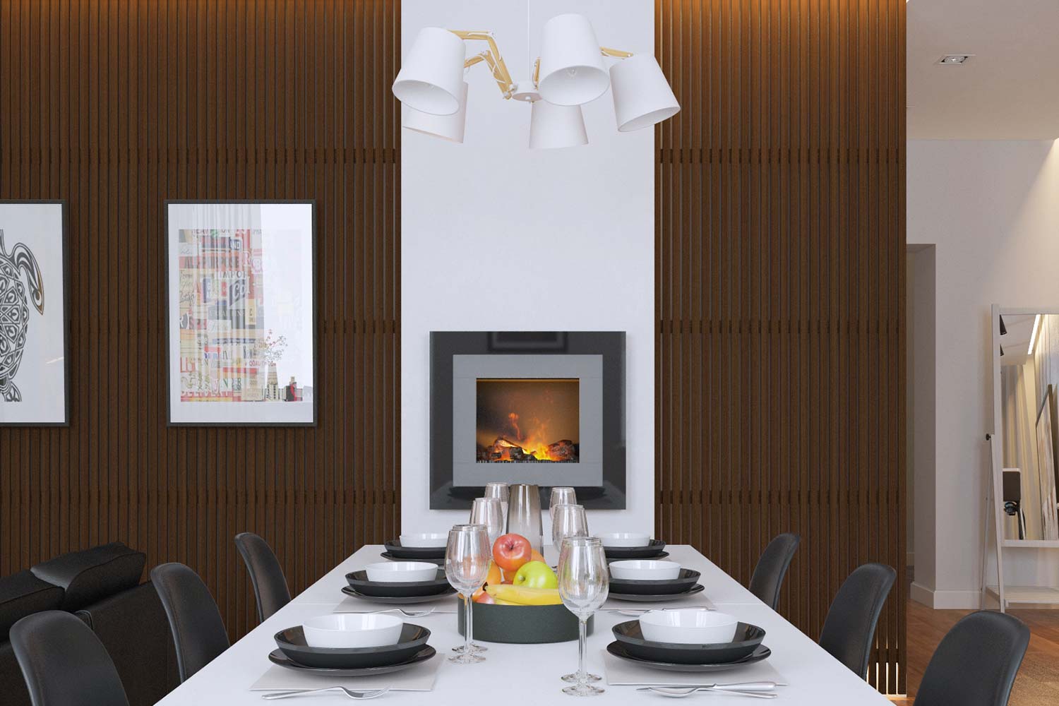 В камине используется муляж дров ручной работы, которые невозможно отличить от настоящих поленьев, а благодаря подсветке создается полная имитация жарко пылающего очага.