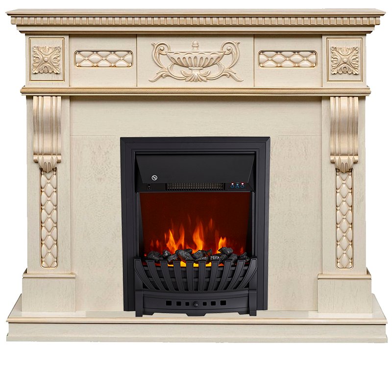 Каминокомплект Corsica - Слоновая кость с патиной (Ширина 1100) с очагом Aspen Black Royal Flame