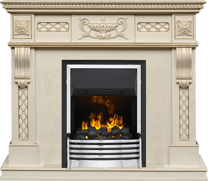 Каминокомплект Corsica - Слоновая кость с патиной (Ширина 1100) с очагом Flagstaff