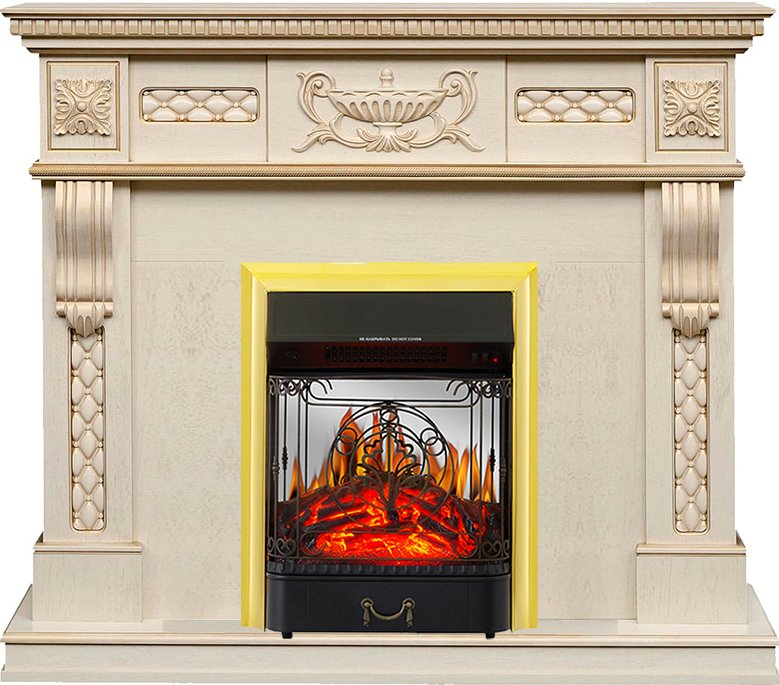 Каминокомплект Corsica - Слоновая кость с патиной (Ширина 1100) с очагом Majestic FX M Brass Royal Flame