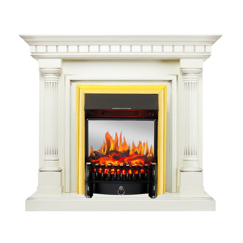 Каминокомплект Dallas - Слоновая кость с патиной с очагом Fobos FX M Brass Royal Flame