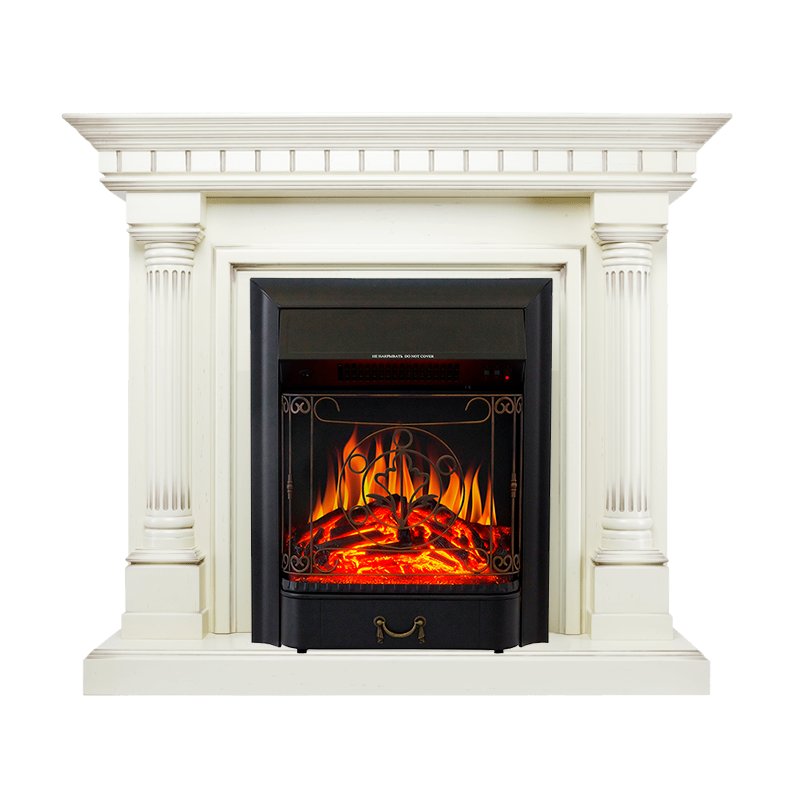 Каминокомплект Dallas - Слоновая кость с патиной с очагом Majestic FX Black Royal Flame