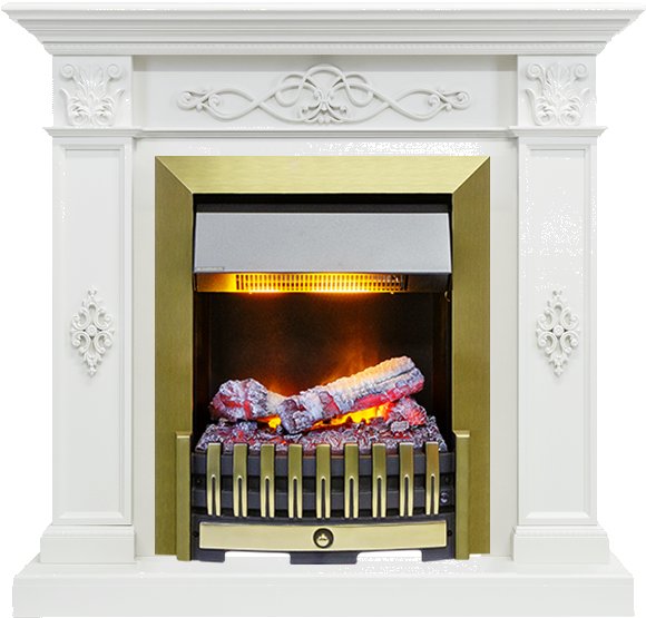Каминокомплект Derby - Белый дуб с очагом Danville Antique Brass FB2 Dimplex