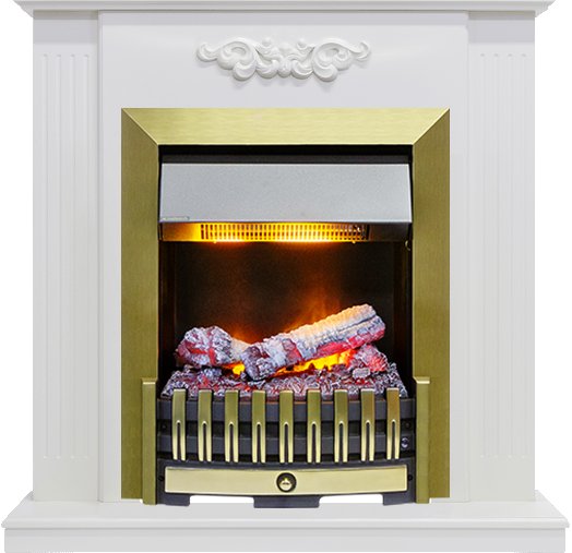 Каминокомплект Lumsden - Белый дуб с очагом Danville Antique Brass FB2 Dimplex