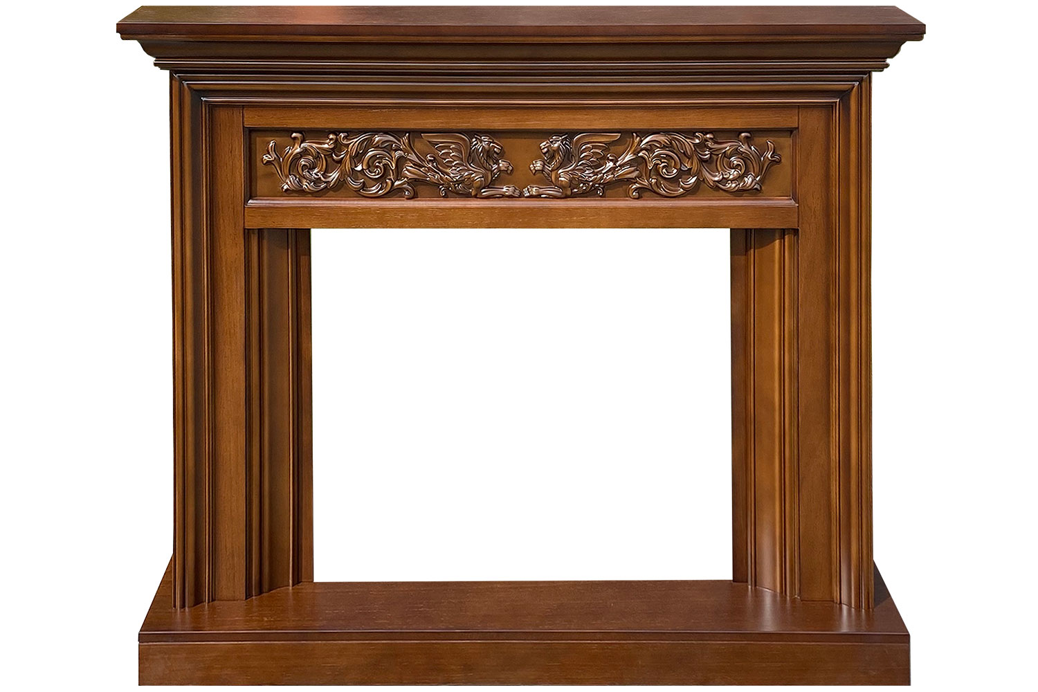 Nottingham пополнил линейку деревянных порталов бренда. Он выполнен в цвете орех и декорирован резным орнаментом в античной тематике. Исполненная в строгом стиле, модель идеально подойдет под классический интерьер. Сочетается с электрическими очагами Royal Flame.