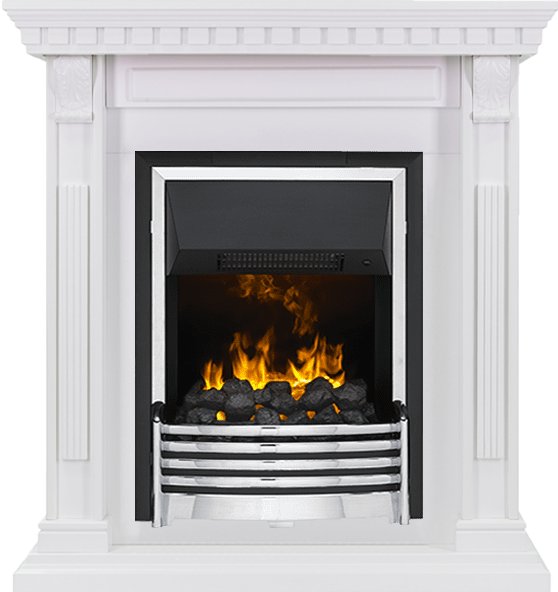 Портал Orlean представлен в белом цвете. Минимум деталей и декора не перегрузят интерьер, и камин будет органично смотреться в помещениях в стиле классика.