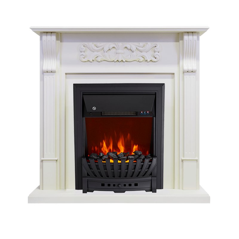 Каминокомплект Venice - Фактурный белый с очагом Aspen Black Royal Flame