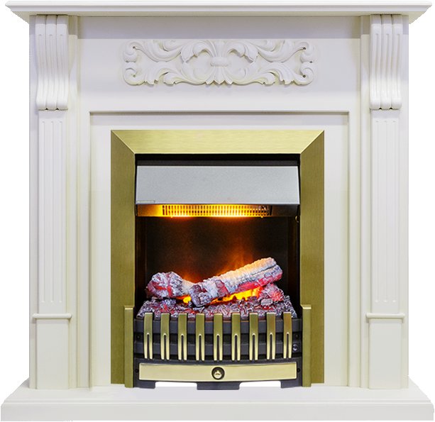 Каминокомплект Venice - Фактурный белый с очагом Danville Antique Brass FB2 Dimplex