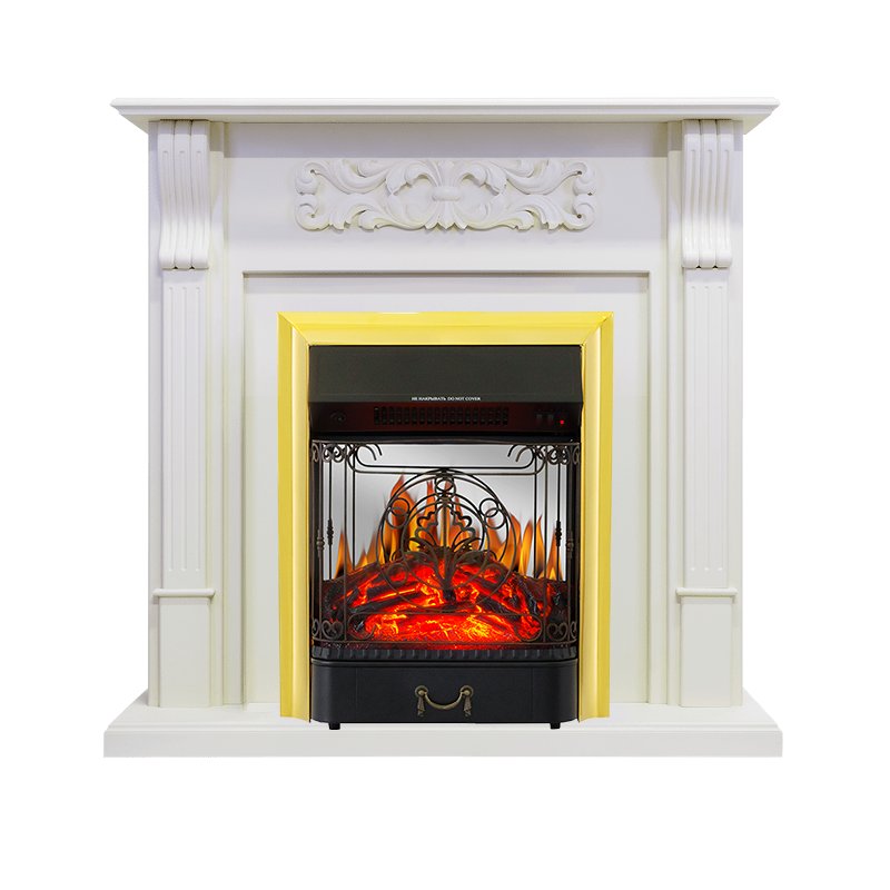 Каминокомплект Venice - Фактурный белый с очагом Majestic FX M Brass Royal Flame