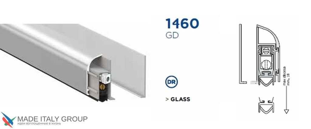 Автоматический порог накладной для стекла Venezia 1460GD/700-500 мм, 1 уровень, серебристый