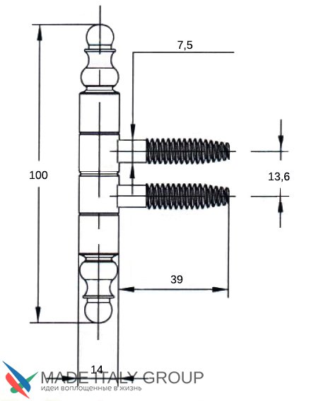1551LAI.01 Петля ввертная Ø14 с декоративной пешкой полированная латунь (38 kg)