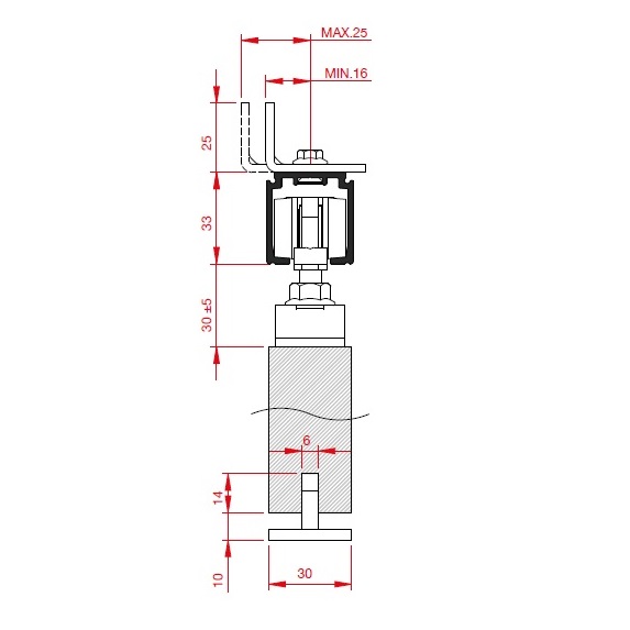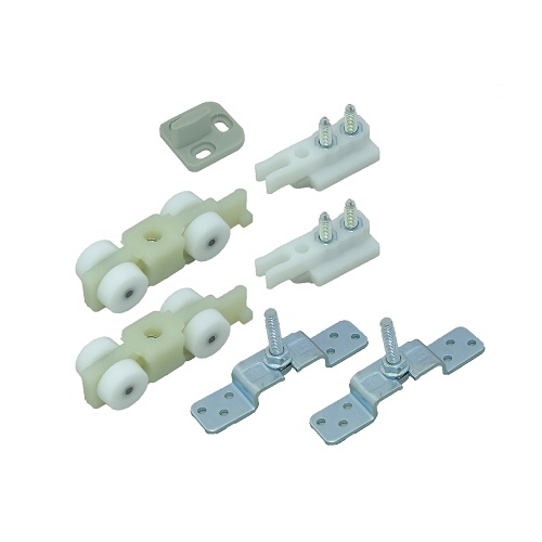 Комплект роликов для раздвижных дверей с максимальной нагрузкой до 80 кг и механический системой остановки.