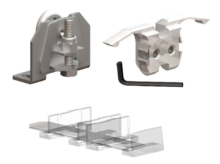 Комплект фурнитуры для одной створки. Без направляющих. Нагрузка 35 кг. Используется для дверей из дерева и ДСП.