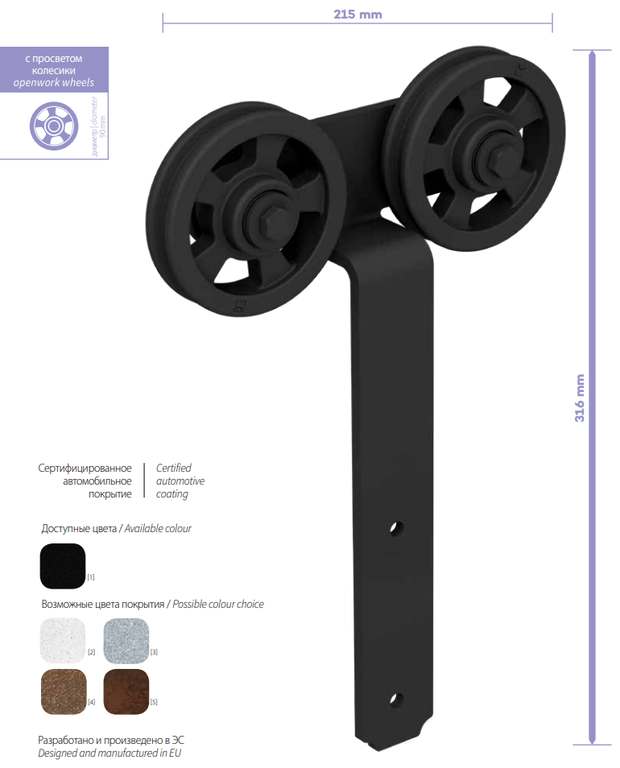 Комплект роликов для раздвижной двери ROC DESIGN LOKI (чёрный матовый, ролик с перфорацией)