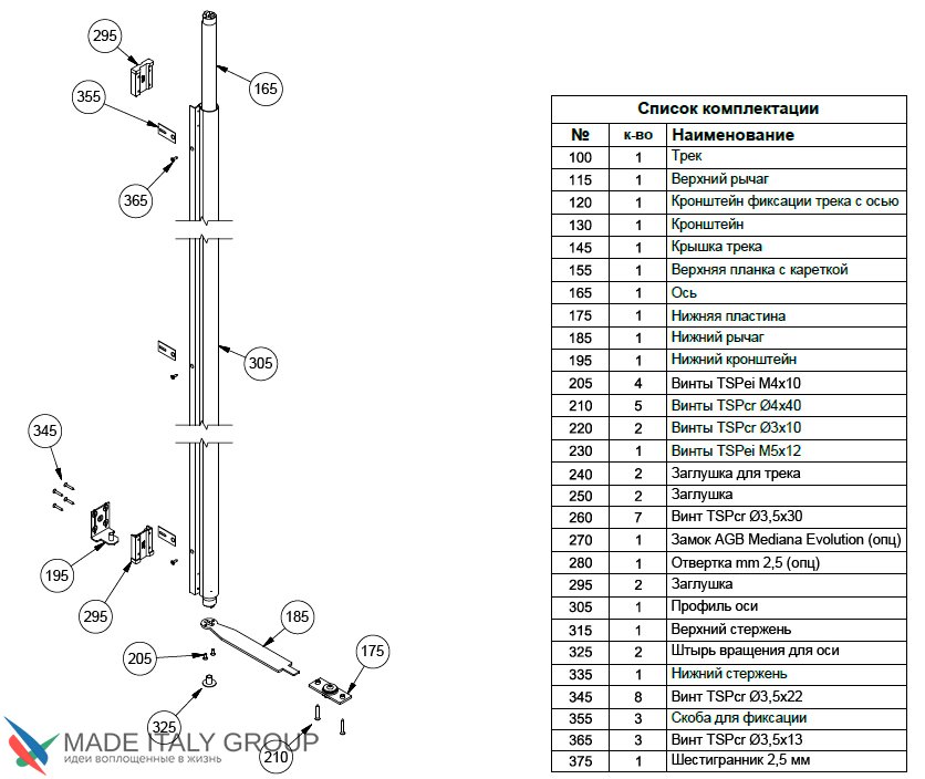 Ось для рото механизма Ergon, комплект с аллюминиевой поддержкой HP=201.6 T.E.