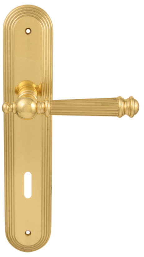 Дверная ручка на планке Melodia 102 Veronica Cab на пластине Demetra Полированная латунь