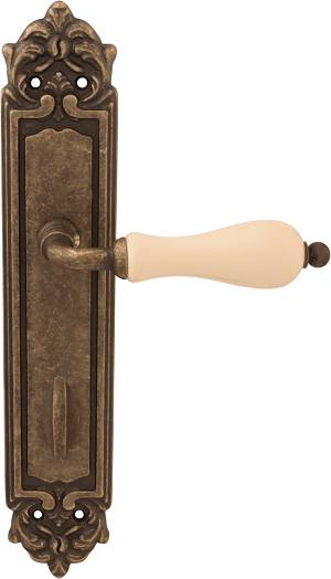Дверная ручка на планке Melodia 179/229 Wc Ceramic Античная бронза+керамика бежевая