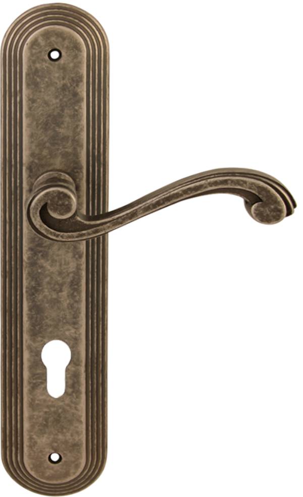 Дверная ручка на планке Melodia 225 Cagliari Cyl на пластине Demetra серебро античное