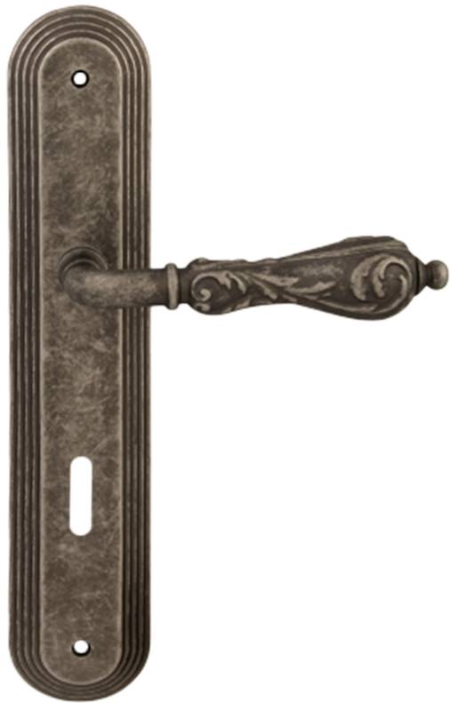 Дверная ручка на планке Melodia 229 Libra Cab на пластине Demetra Античное серебро