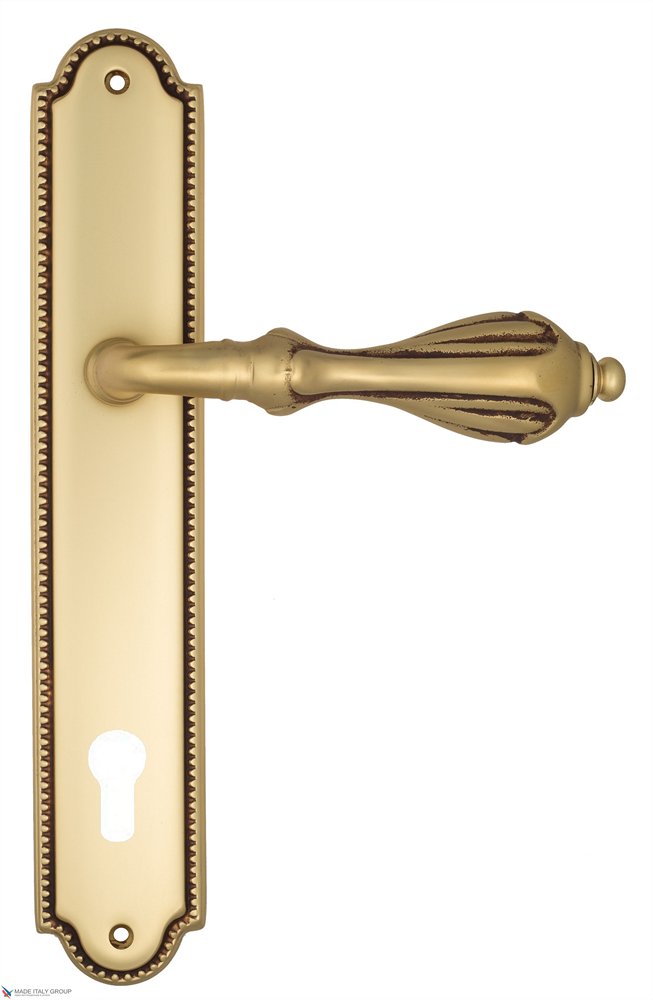 Дверная ручка Venezia ANAFESTO CYL на планке PL98 французское золото + коричневый