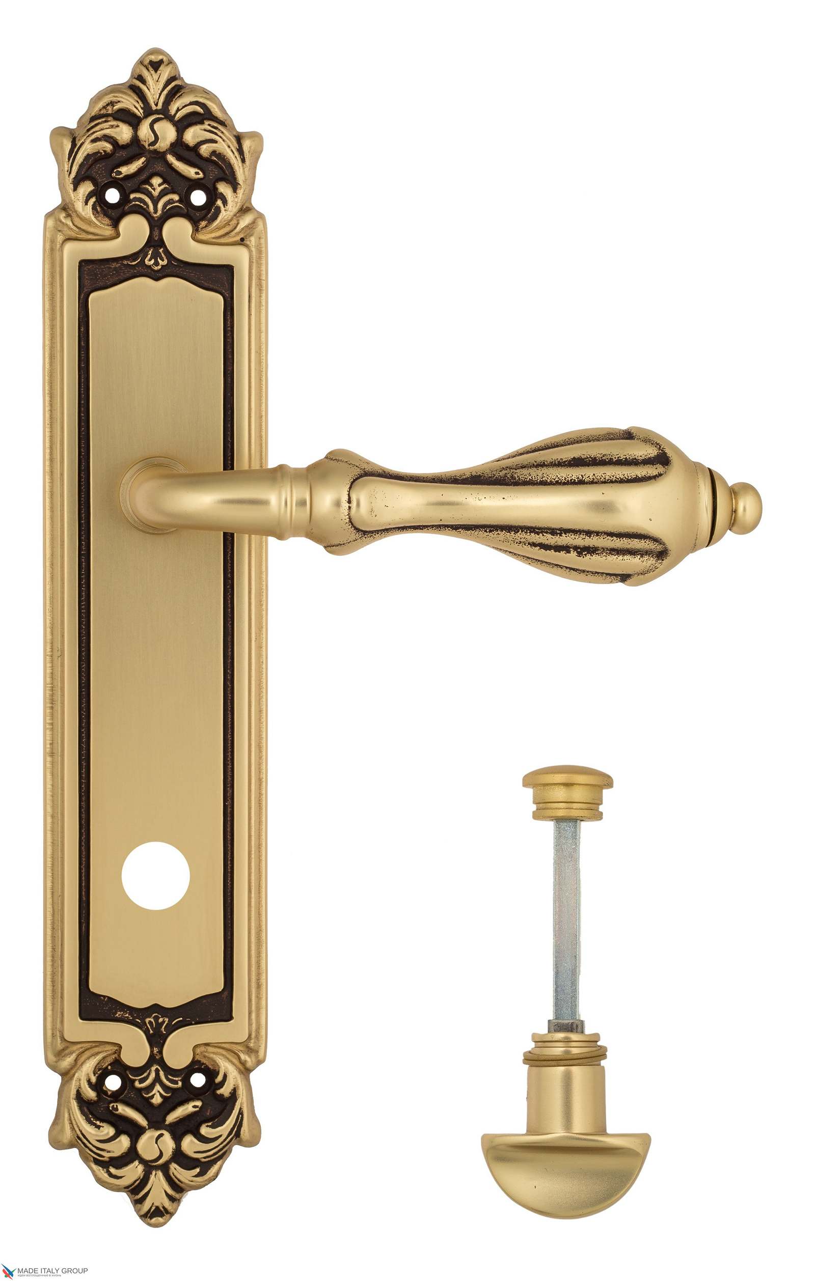 Дверная ручка Venezia ANAFESTO WC-2 на планке PL96 французское золото + коричневый
